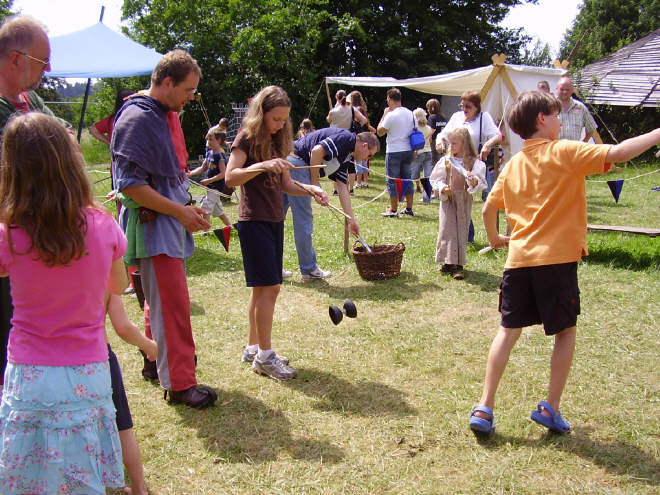 - Mit Bällen, Keulen und Diabolos wird auf der Freifläche jongliert.